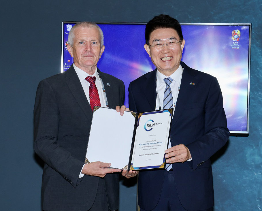 顺天市(市长卢官圭)宣布,作为韩国首个基层地方自治团体,顺天正式加入国际自然保护联盟(IUCN:International Union for Conservation of Nature),并派遣代表团出席第24届世界自然保护大会(WCC:World Conservation Congress),在国际舞台上正式展开活动,向世界展示了城市的愿景。